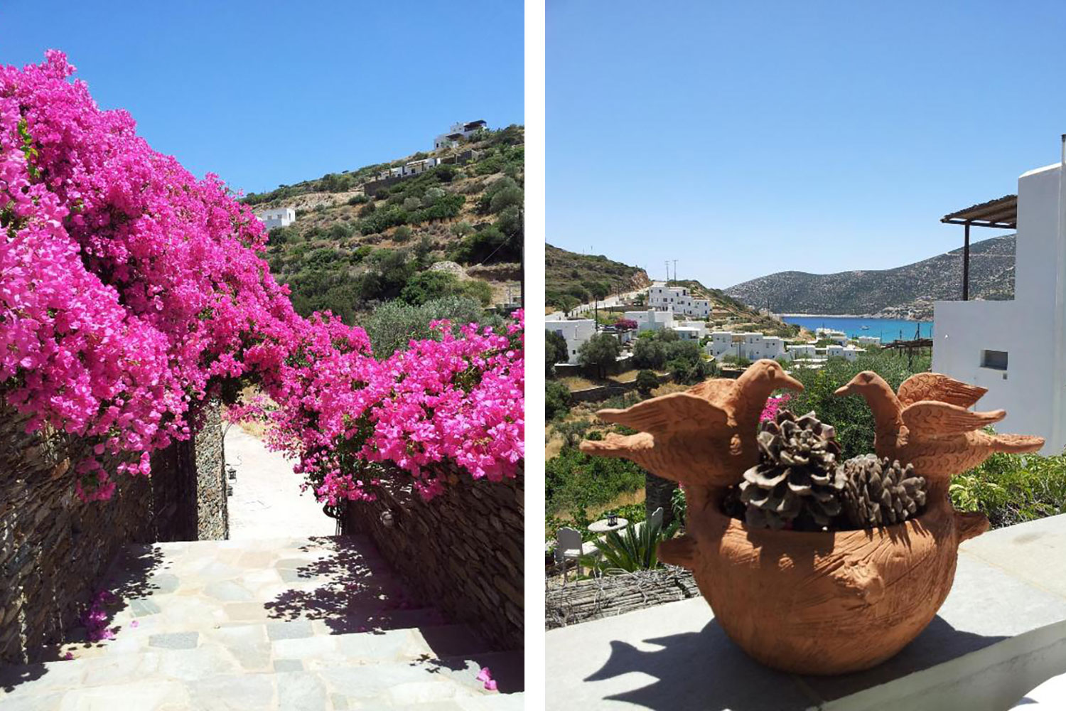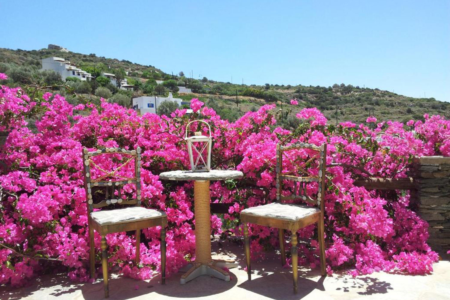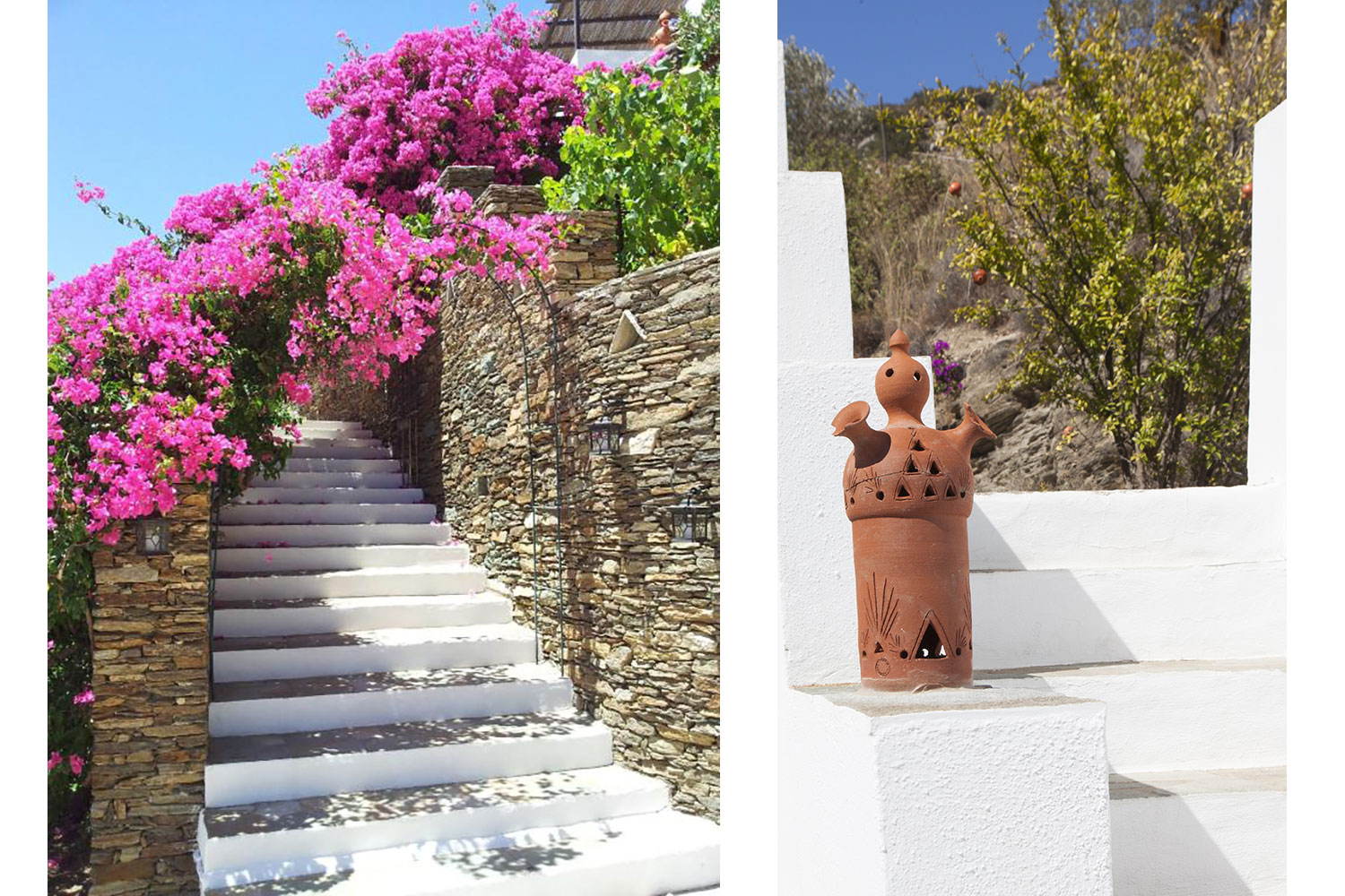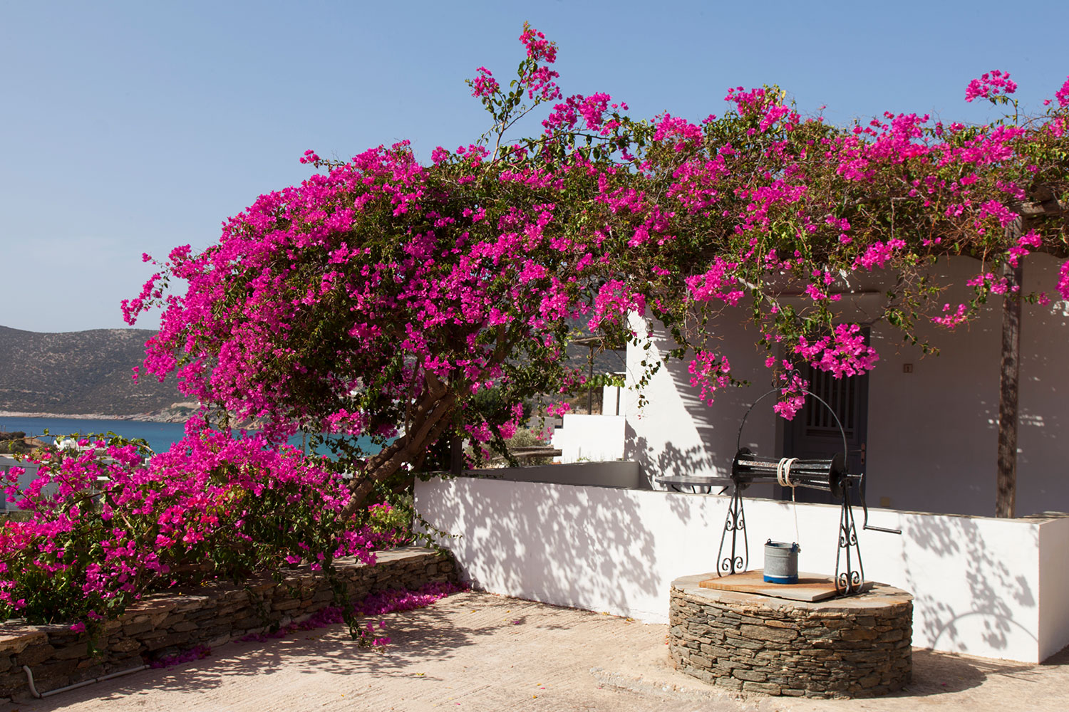 Ο κήπος με τις σκιασμένες γωνιές του προσφέρει ιδανικά σημεία για ξεκούραση, διάβασμα ή απλώς για να απολαύσετε τη θέα και το κυκλαδίτικο φως.
